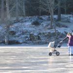 Perfect ice on Sognsvann in January, 2017. Sognsvann is a lake at the edge of Oslo, wrapped by forest, at the end of a train line. Bring your skates, bring your skis, bring your baby buggy, bring your happy dog.